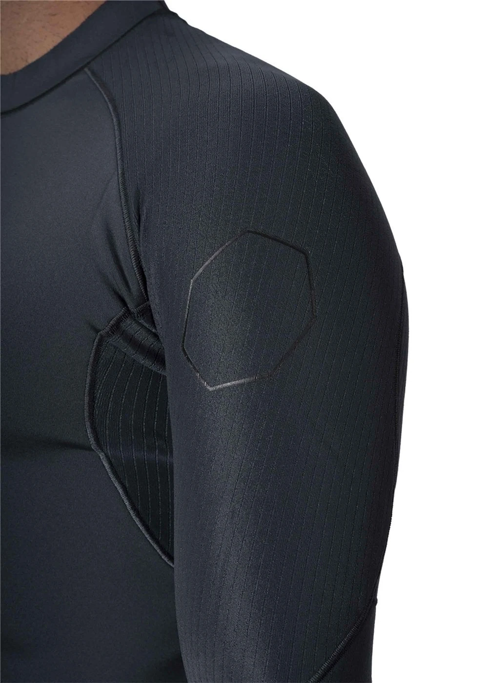 • Stitch-less outer arm seams for superior stretch.