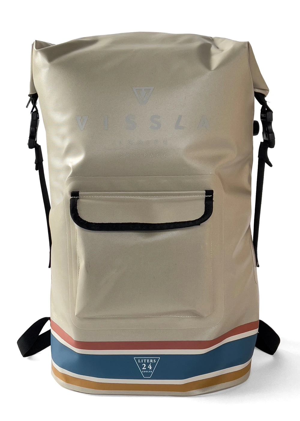 You’ll be glad to have this 24L dry backpack with an insulation purge valve to keep your liquids cool. Conscientiously assembled with durable polyvinyl waterproof fabric and welded seams. The top of the bag is designed to roll shut and clip securely shut with a nylon buckle to keep contents cold and prevent water from leaking out. Front welded non waterproof pocket. Adjustable backpack straps at the back of the bag are welded to the main vessel, and there’s a steel bottle opener attachment. Cheers! . . . On the beach. 50x40x20cm